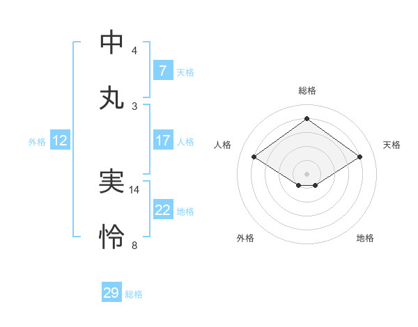 中丸 実怜さんの総格は29画の4点!
