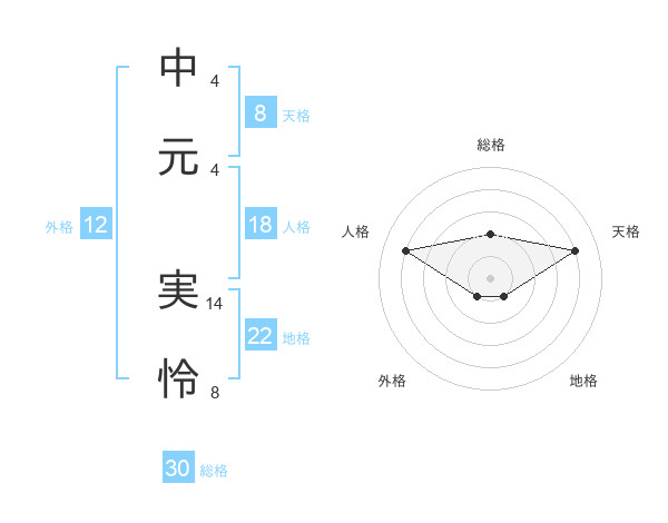 中元 実怜さんの地格は22画の1点!
