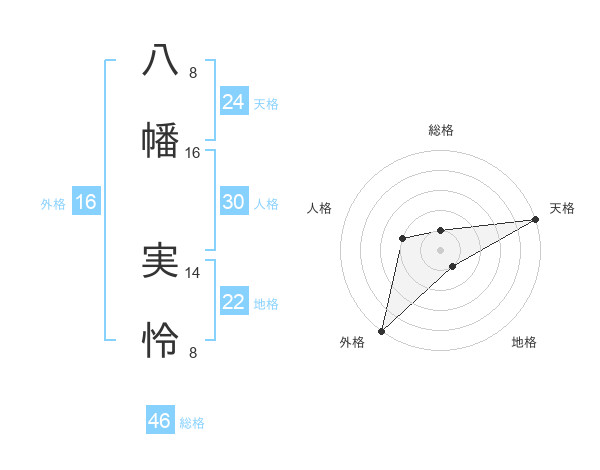 八幡 実怜さんの総格は46画の1点!