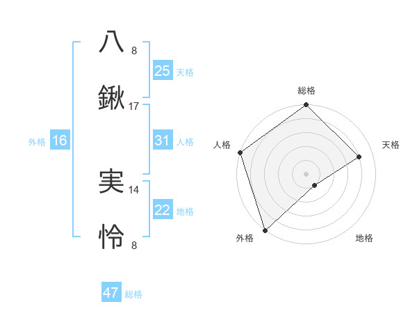 八鍬 実怜さんを姓名の画数から五運を鑑定