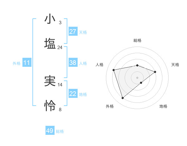 小塩 実怜さんを姓名の画数から五運を鑑定