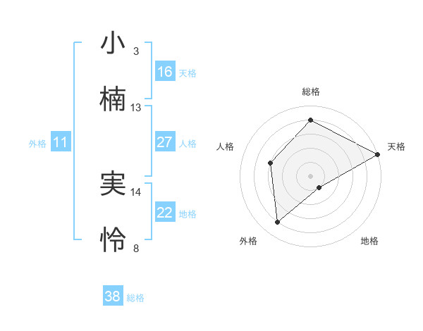 小楠 実怜さんの総格は38画の4点!