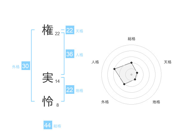権 実怜さんの総格は44画の2点!