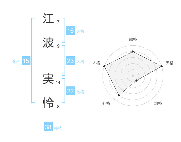 江波 実怜さんの総格は38画の4点!