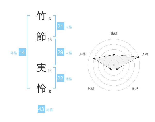 竹節 実怜さんの天格は21画の5点!