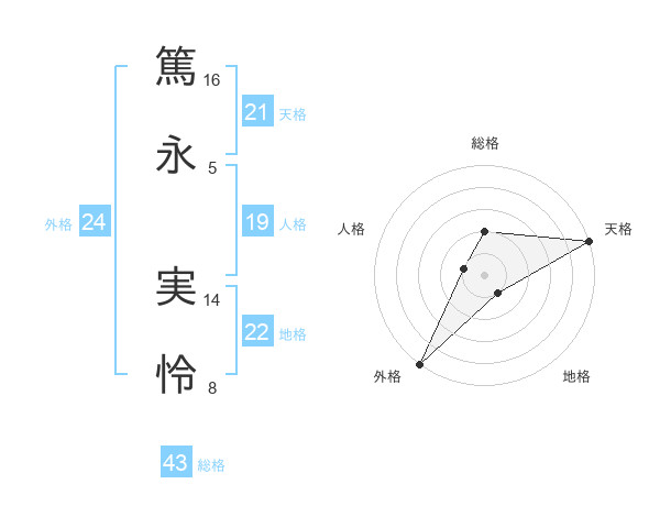 篤永 実怜さんの外格は24画の5点!