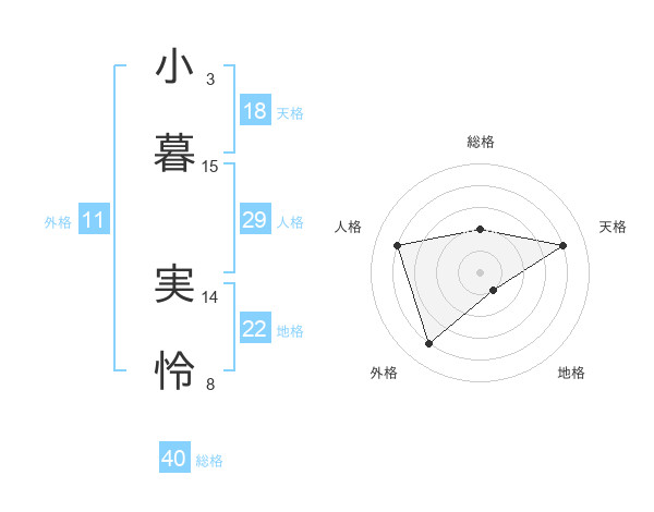 小暮 実怜さんを姓名の画数から五運を鑑定