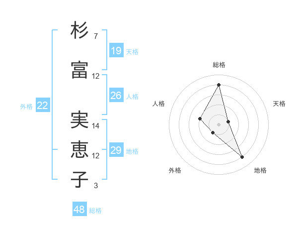 杉富 実恵子さんを姓名の画数から五運を鑑定