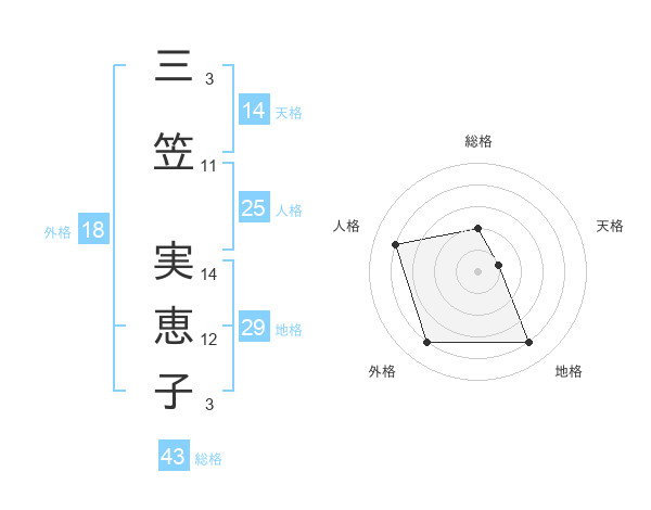三笠 実恵子さんを姓名の画数から五運を鑑定