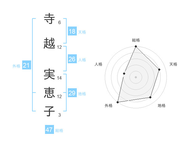 寺越 実恵子さんを姓名の画数から五運を鑑定