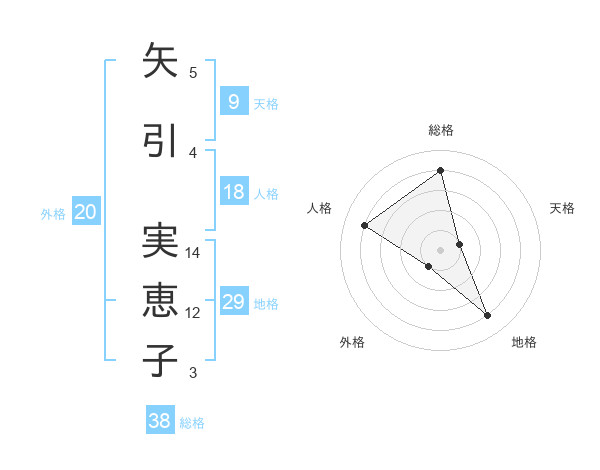 矢引 実恵子さんを姓名の画数から五運を鑑定