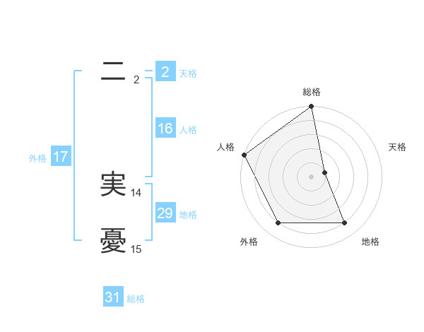 二 実憂さんの外格は17画の4点!