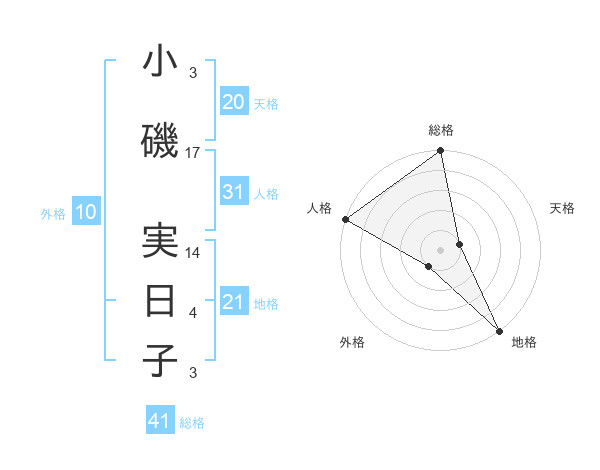 小磯 実日子さんを姓名の画数から五運を鑑定