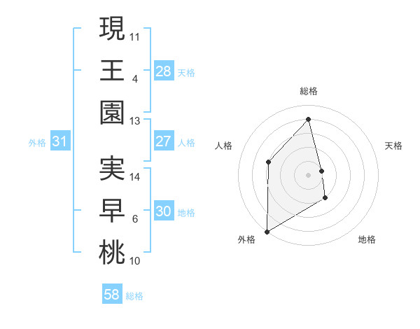 現王園 実早桃さんの総格は58画の4点