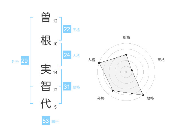 曽根 実智代さんを姓名の画数から五運を鑑定