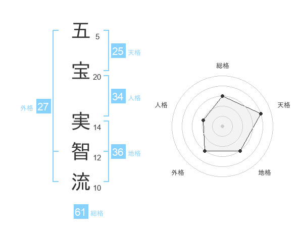 五宝 実智流さんを姓名の画数から五運を鑑定