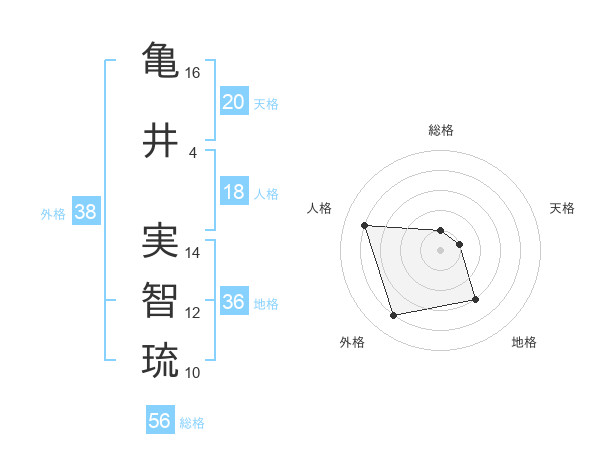 亀井 実智琉さんを姓名の画数から五運を鑑定