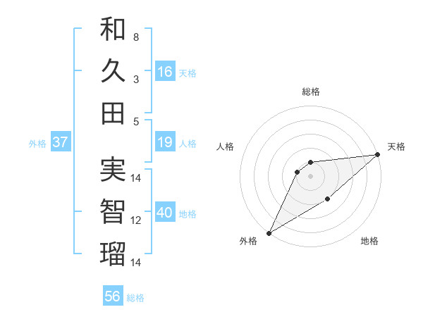 和久田 実智瑠さんを姓名の画数から五運を鑑定