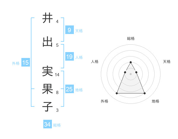井出 実果子さんの総格は34画の2点!