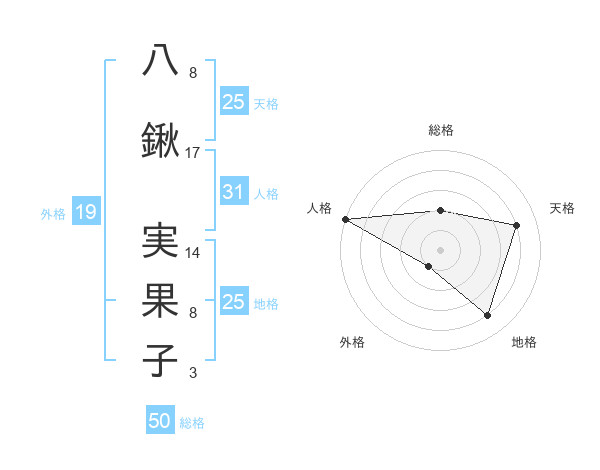 八鍬 実果子さんの総格は50画の2点!