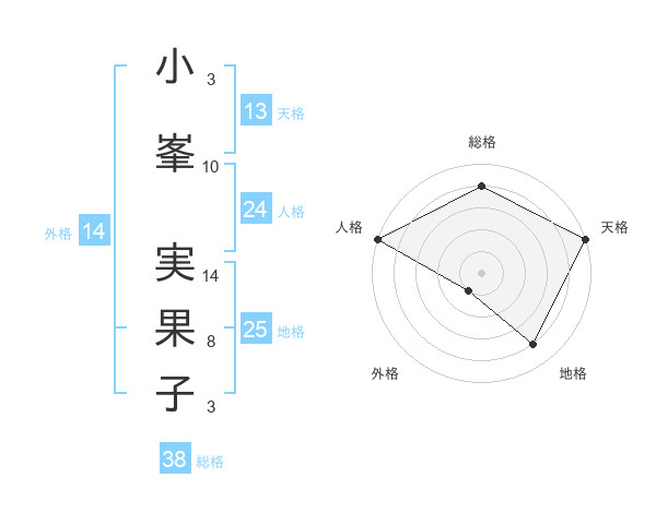 小峯 実果子さんの天格は13画の5点!