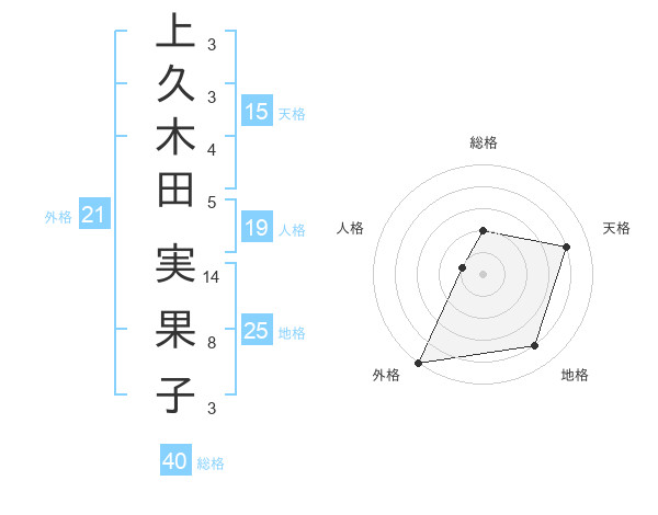 上久木田 実果子さんを姓名の画数から五運を鑑定