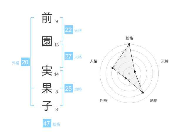 前園 実果子さんの総格は47画の5点!