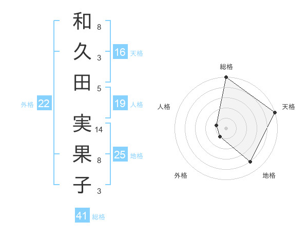和久田 実果子さんの天格は16画の5点!