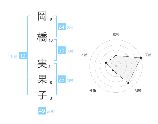岡橋 実果子さんを姓名の画数から五運を鑑定
