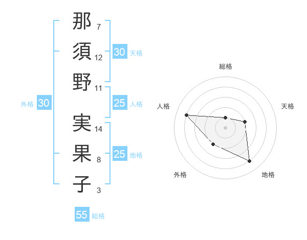 那須野 実果子さんの総格は55画の1点!