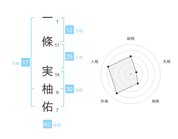 一條 実柚佑さんの総格は42画の3点!