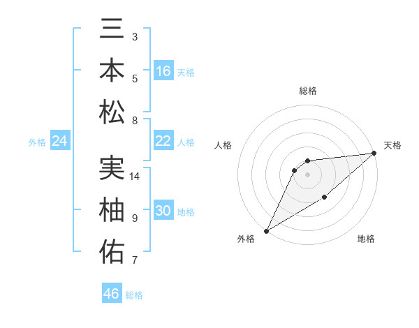 三本松 実柚佑さんの外格は24画の5点!