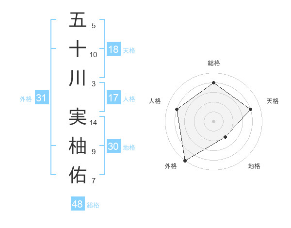 五十川 実柚佑さんの外格は31画の5点