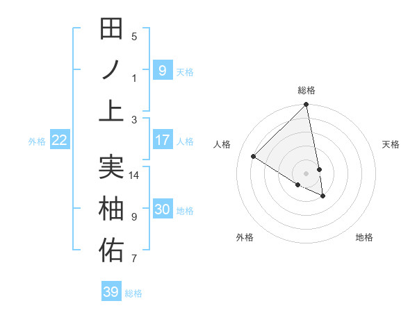 田ノ上 実柚佑さんを姓名の画数から五運を鑑定
