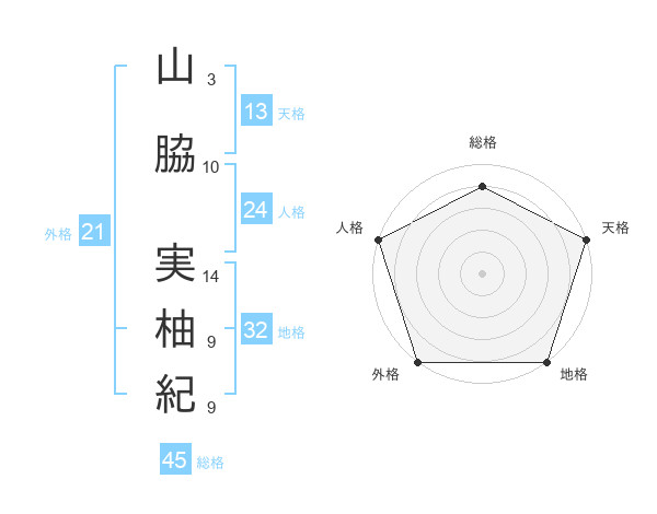 山脇 実柚紀さんの総格は45画の4点!