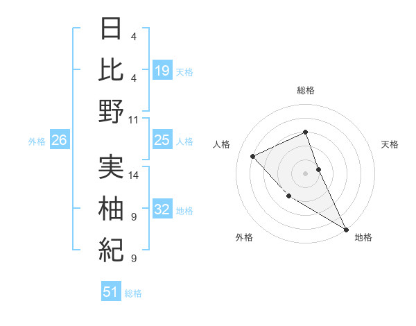 日比野 実柚紀さんを姓名の画数から五運を鑑定