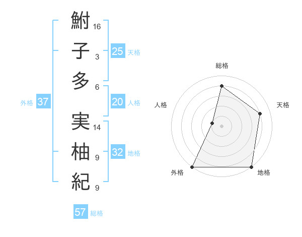 鮒子多 実柚紀さんを姓名の画数から五運を鑑定