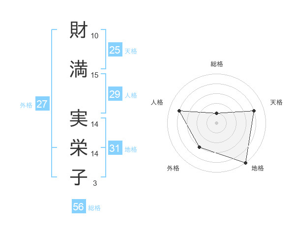 財満 実栄子さんを姓名の画数から五運を鑑定