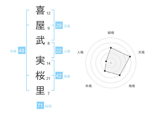 喜屋武 実桜里さんの総格は71画の3点!