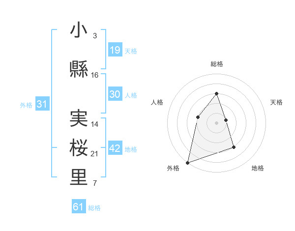 小縣 実桜里さんを姓名の画数から五運を鑑定