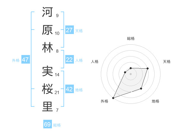 河原林 実桜里さんを姓名の画数から五運を鑑定