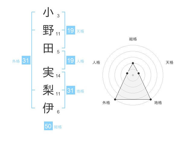 小野田 実梨伊さんの外格は31画の5点!