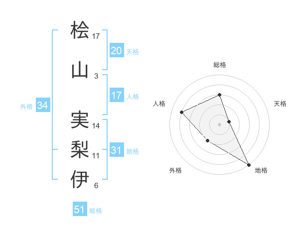 桧山 実梨伊さんの総格は51画の3点!