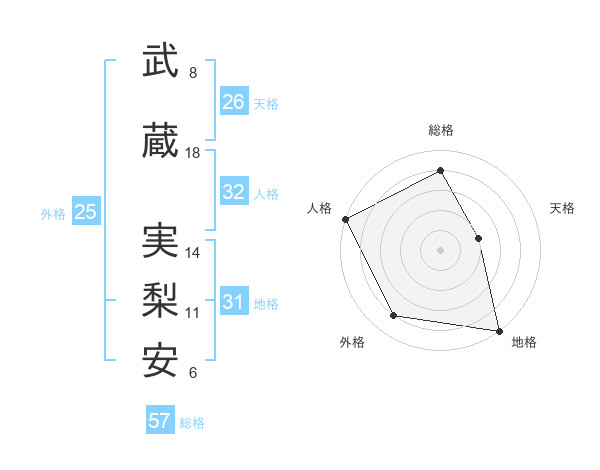 武蔵 実梨安さんを姓名の画数から五運を鑑定