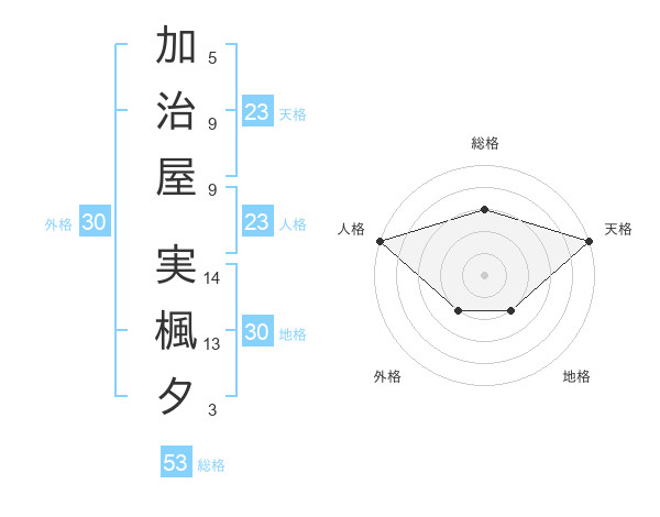 加治屋 実楓夕さんを姓名の画数から五運を鑑定