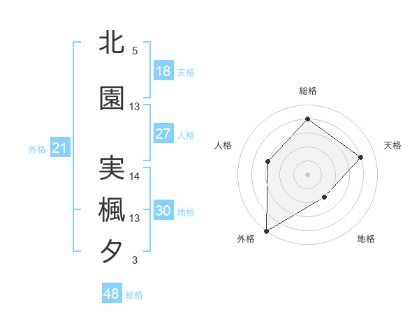 北園 実楓夕さんを姓名の画数から五運を鑑定