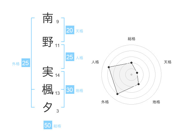 南野 実楓夕さんを姓名の画数から五運を鑑定