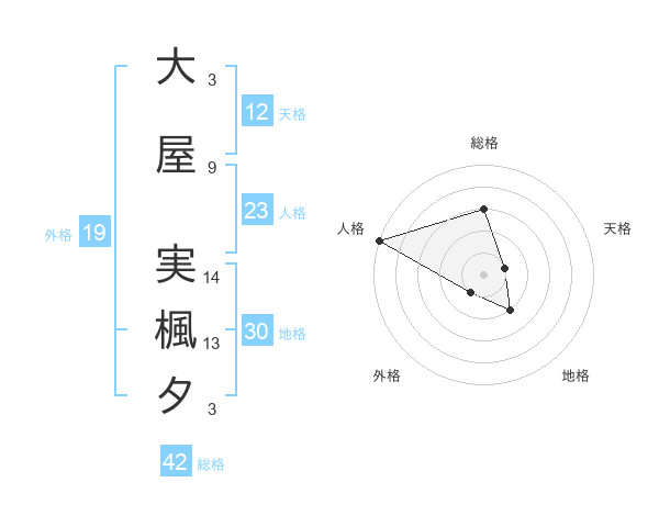大屋 実楓夕さんを姓名の画数から五運を鑑定