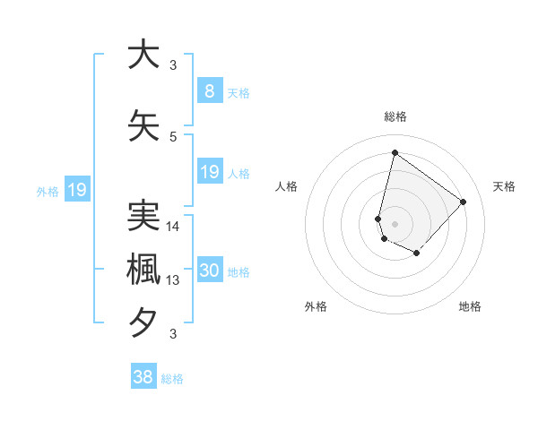 大矢 実楓夕さんを姓名の画数から五運を鑑定