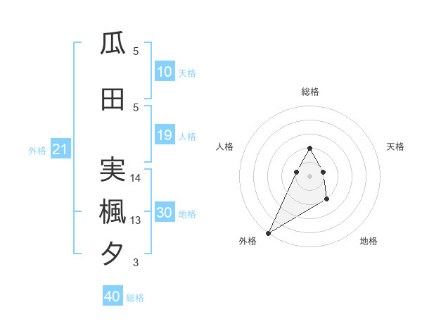 瓜田 実楓夕さんを姓名の画数から五運を鑑定